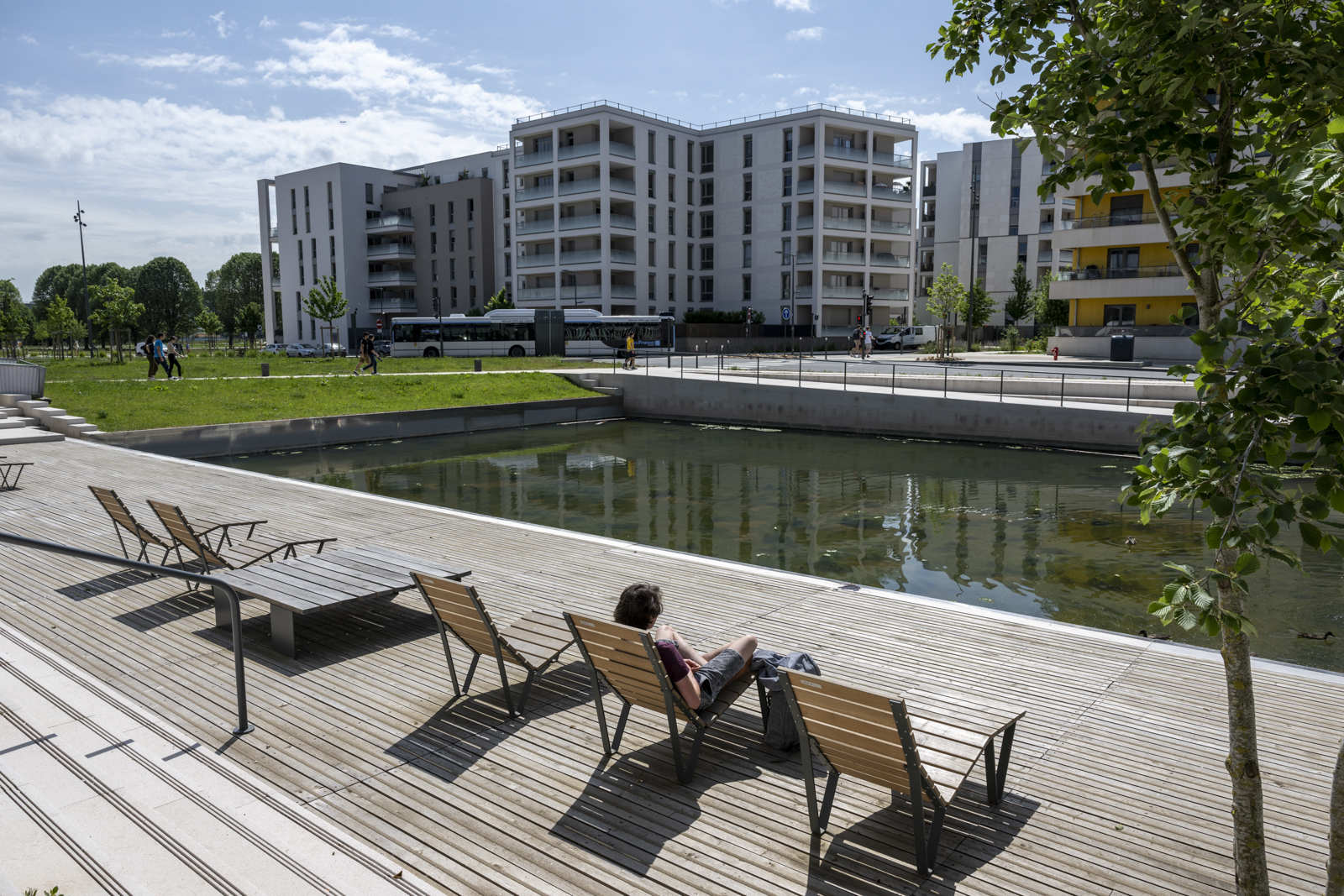 Ce système hydraulique fabrique l’image et la qualité des espaces publics, mais aussi les usages qui se développent autour. L’installation de chaises longues autour du bassin de l’ENS en est la preuve. Ces aménagements contribuent à créer des lieux où l’on peut habiter l’espace public.