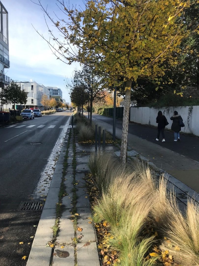 Les noues participent aux îlots de fraicheur urbains et permettent de détecter rapidement les dysfonctionnements. Elles sont particulièrement présentes au sein du quartier de Moulon, mais également sur les grandes avenues du quartier de l’école Polytechnique (Vauve et M. Pelletier). Faiblement pentée, elles guident progressivement l’eau pluviale vers leurs exutoires, à l’image des rigoles historiques.