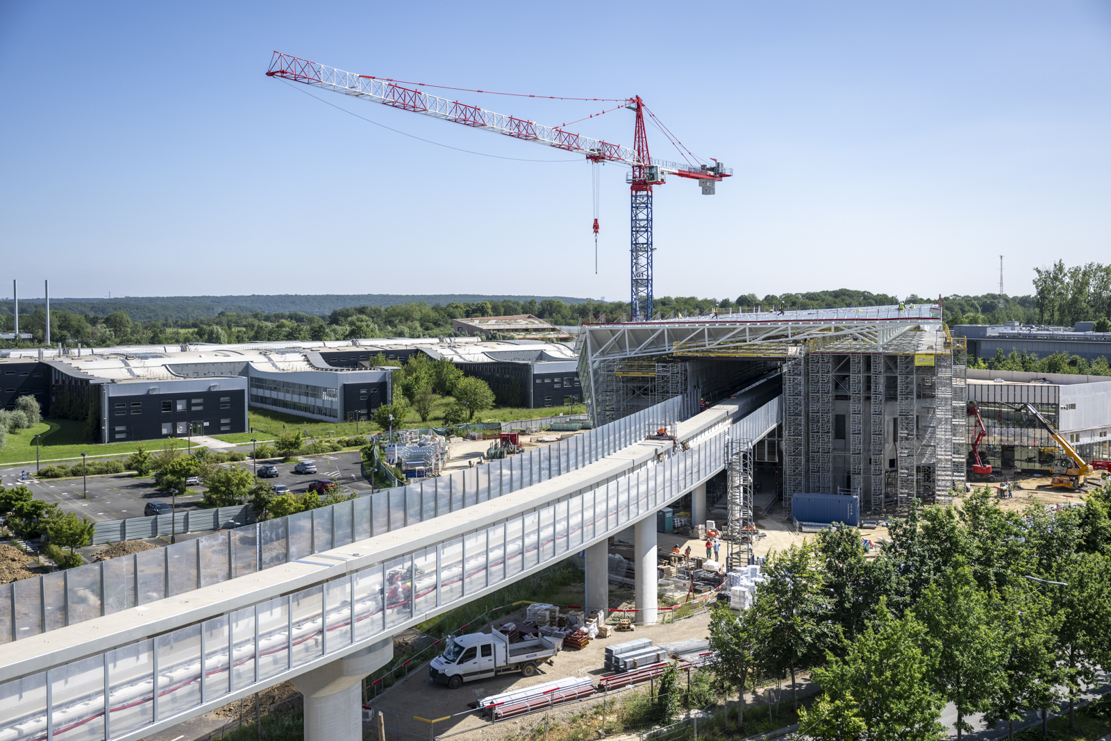 Dès 2026, la ligne 18 du Grand Paris Express, un métro automatique hautement performant, reliera entre eux les pôles urbains existants et le plateau de Saclay aux hubs stratégiques du Grand Paris. Etape clé et nécessaire du développement de Paris-Saclay, cette ligne de métro répond à des besoins réels de développement du territoire et à la prise en compte des problématiques de déplacement, tout en accompagnant la fabrique de véritables lieux de vie. Avec 10 gares prévues sur un tracé de 35 km, dont 14 km en aérien, la ligne 18 changera durablement la desserte du territoire de Paris-Saclay.