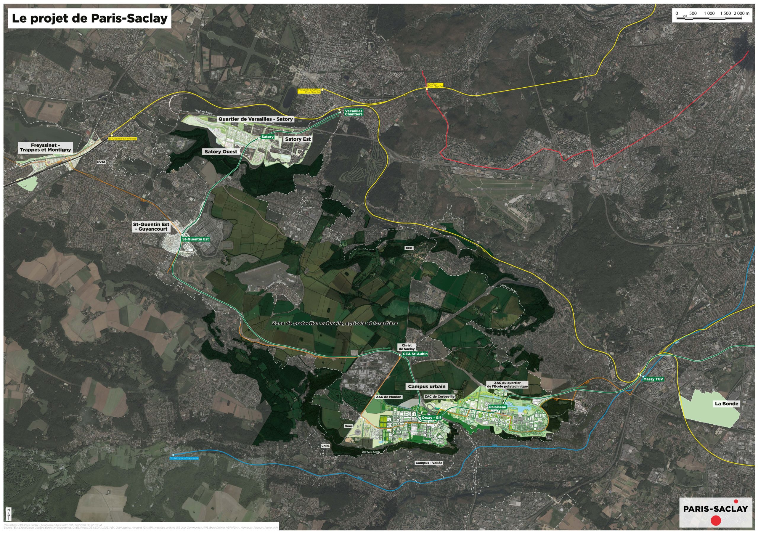 Cœur scientifique du projet, le Sud du plateau de Saclay, qui s’étend sur 7 km et environ 600 hectares, doit à terme devenir un campus urbain innovant d’envergure internationale qui accueillera à l’horizon 2025, 15 000 habitants, plus de 20 000 enseignants-chercheurs, plus de 30 000 étudiants et 21 000 salariés.